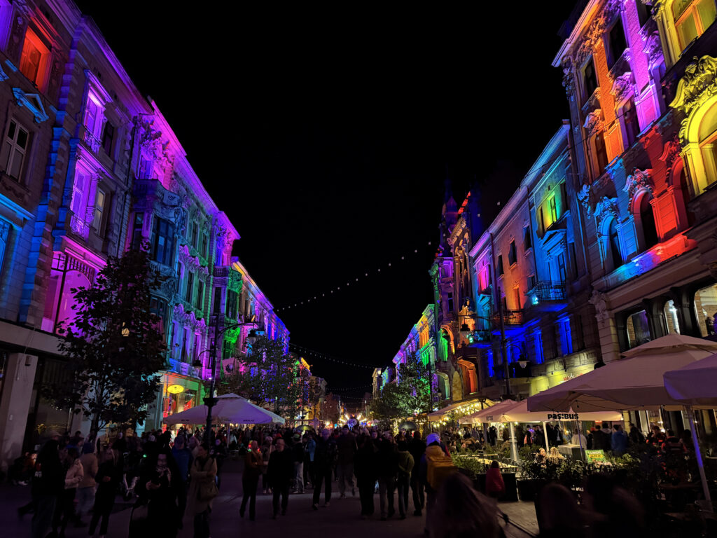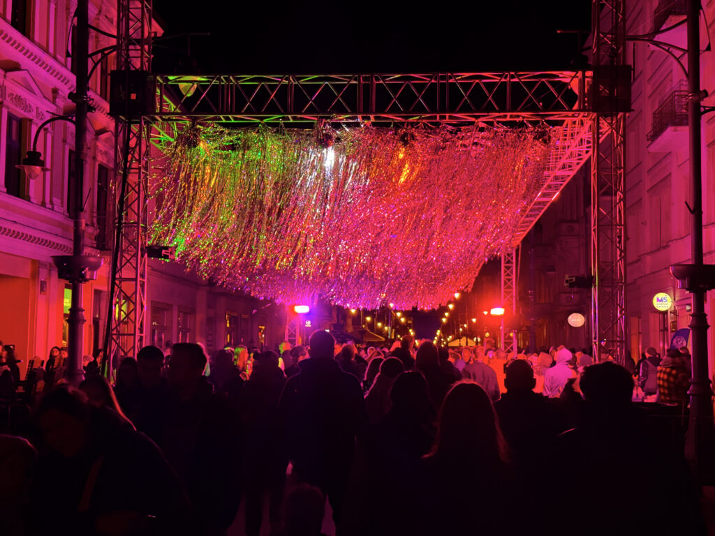 Przemierzając miasto można było zobaczyć widowiskowe mappingi na pięknych łódzkich, zabytkowych budynkach, zachwycające animacje w nieoczywistych lokalizacjach, niezwykłe instalacje świetlne, podświetlone feerią barw kamienice ulicy Piotrkowskiej oraz przystanki muzyczne.