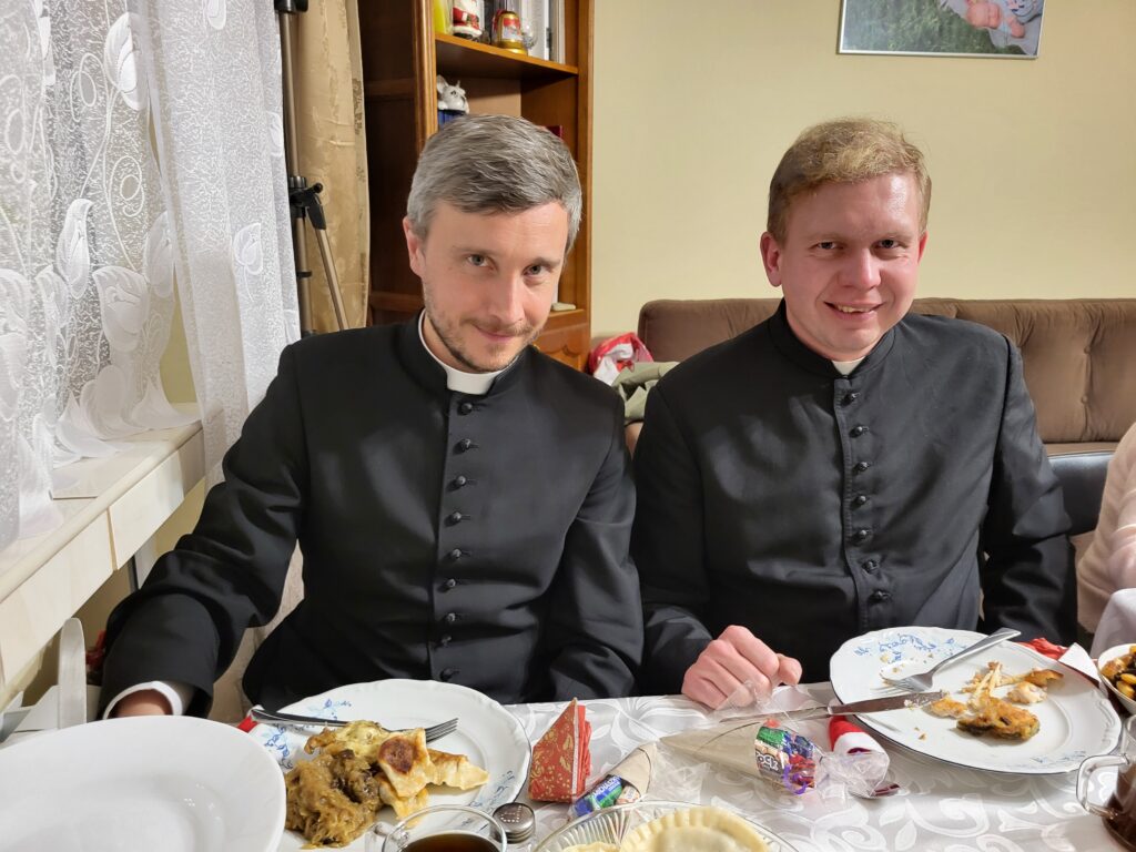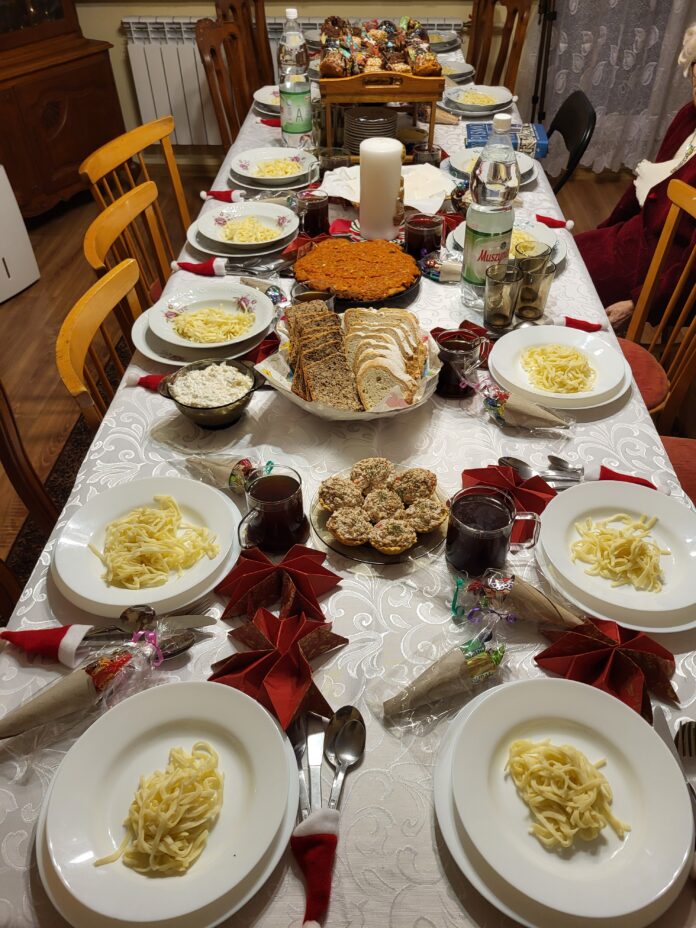 W tym roku – jako, że w naszej rodzinie jest dwóch księży – z uwagi na rok nieparzysty Ewangelię przeczytał i modlitwę rozpoczynającą wigilię poprowadził brat szwagra. Następnie podzieliliśmy się opłatkiem składając sobie życzenia i rozpoczęła się wieczerza trwająca długo, bo od 16:00 prawie do 21:00.