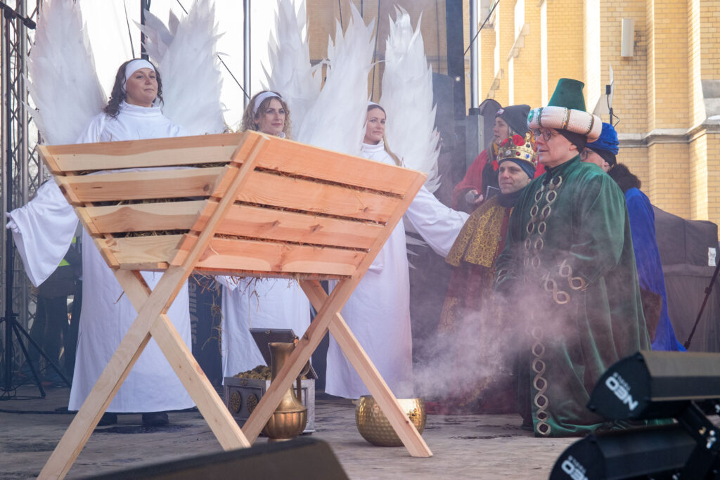 Orszak zakończył się przy szopce usytuowanej przy katedrze, gdzie na scenie trzej królowie złożyli swoje dary, a następnie miała miejsce – już po raz drugi w historii Orszaku – adoracja Najświętszego Sakramentu – Jezusa realnie obecnego w Najświętszym Sakramencie Ołtarza.