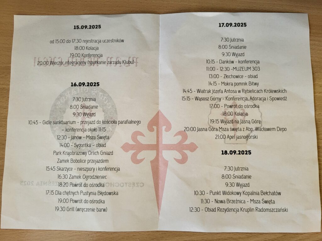 Czwarty i ostatni dzień rozpoczęła kawa w blasku pięknego słońca, następnie jutrznia i śniadanie. Po spakowaniu się i przygotowaniu motocykla oraz po pożegnaniu się z niektórymi księżmi, którzy do domu mieli nieco dalej niż ja, ruszyliśmy w ostatnią trasę.