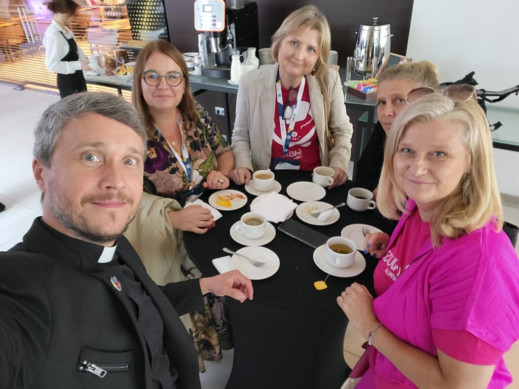 Nie ukrywam, że wchodząc w koloratce do hotelu, gdzie odbywała się konferencja czułem na sobie wiele par oczu pytających, a po co tu ksiądz. Nie ukrywam było to peszące i poruszające ale… skoro temat jest ważny i sama szefowa pisała kilka razy przypominając mi o tym, bym był na tej konferencji to poszedłem, byłem i bardzo się cieszę z tego doświadczenia – kolejnego doświadczenia w moim kapłańskim życiu.