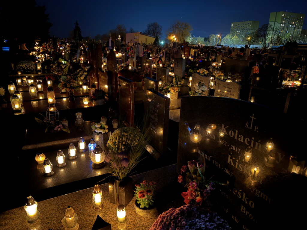 Skoro zakupy zostały zrobione skoro świt, to przed południem – w tym roku razem z Tatą pojechaliśmy na cmentarz do pradziadków, którzy zostali pochowani 40 km. od mojego miasta. Ustawiliśmy kwiaty, zapaliliśmy znicze i odmówiliśmy modlitwy za zmarłych.
