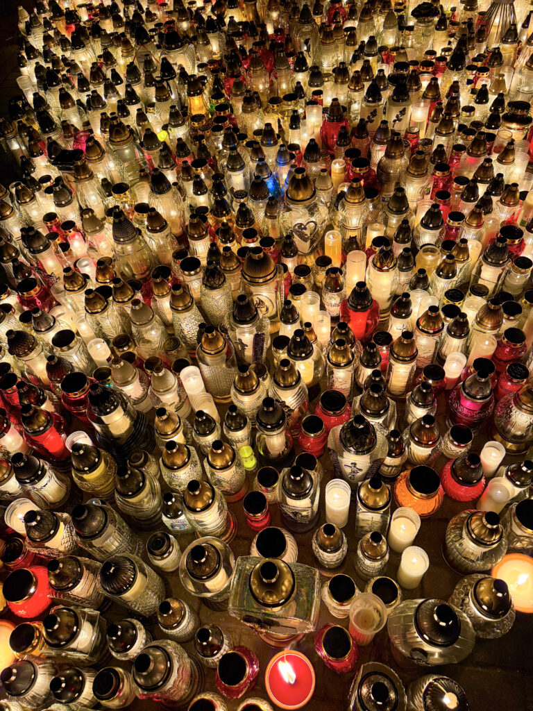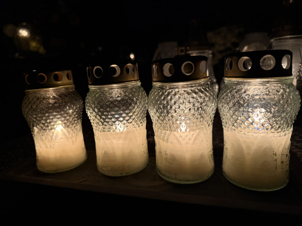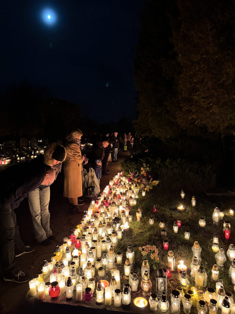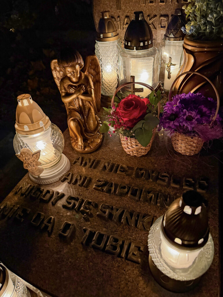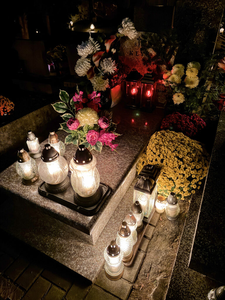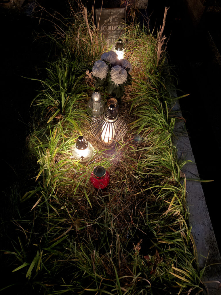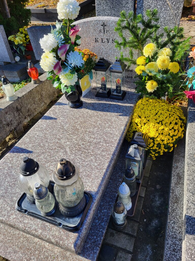 Skoro zakupy zostały zrobione skoro świt, to przed południem – w tym roku razem z Tatą pojechaliśmy na cmentarz do pradziadków, którzy zostali pochowani 40 km. od mojego miasta. Ustawiliśmy kwiaty, zapaliliśmy znicze i odmówiliśmy modlitwy za zmarłych.