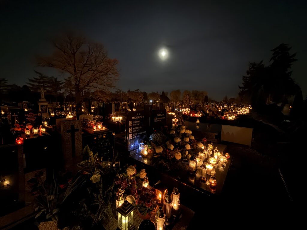 Oczywiście nie byłoby Wszystkich Świętych, gdyby nie wieczorny spacer i modlitwa na cmentarzu. To taki mój zwyczaj od lat. Lubię pójść i zatrzymać się przy blasku świec, pomodlić się za tych, którzy są już przed Bogiem i zrobić kilka klimatycznych fotografii, zatrzymując chwilę.
