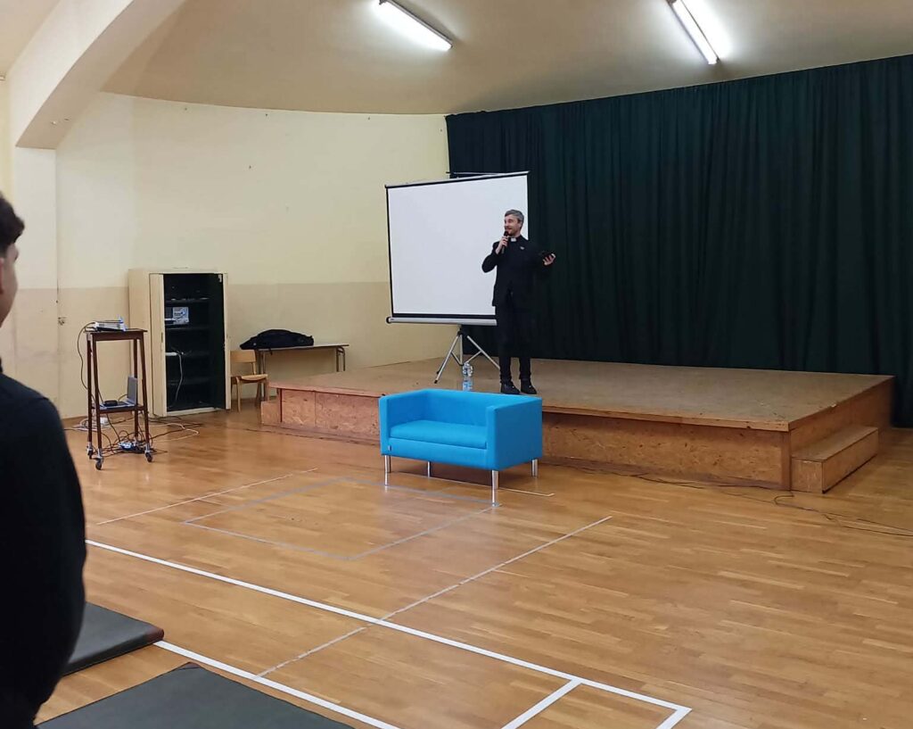 Tak przygotowany pojechałem w Popielec do wskazanej szkoły, gdzie po przekroczeniu progu zostałem zweryfikowany – jako osoba niekarana i mogąca pracować z dziećmi, a następnie miałem możliwość spotkać się w auli szkolnej z uczniami.