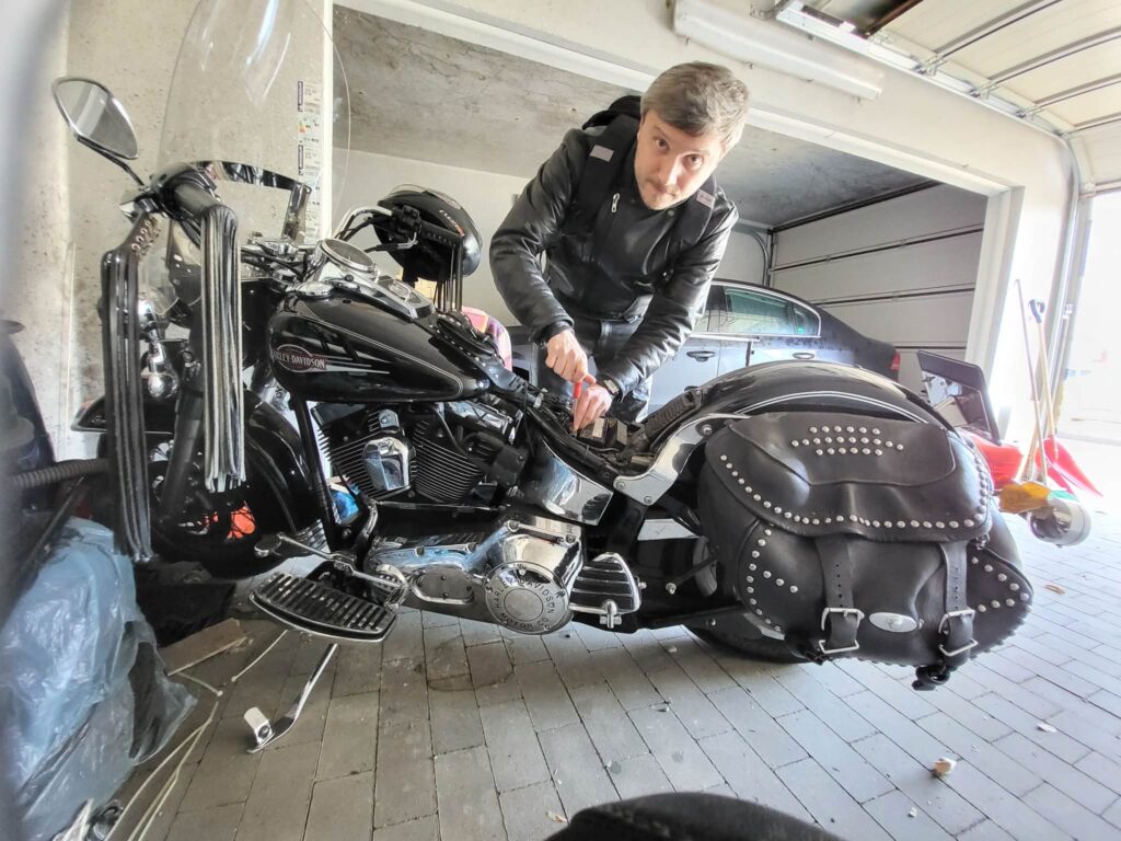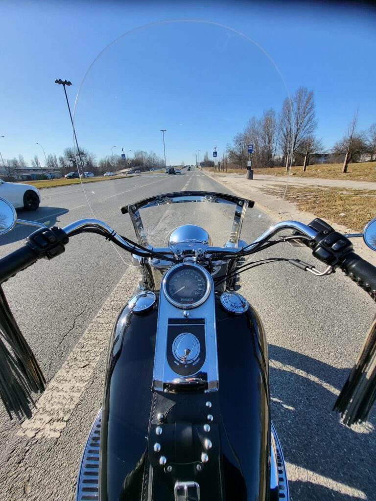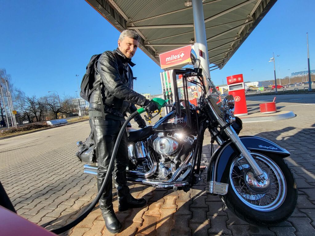 Mój harley-owy rumak odpalił za pierwszym razem, ale wygłodniały po zimie od razu został zatankowany do pełna na pobliskiej stacji.