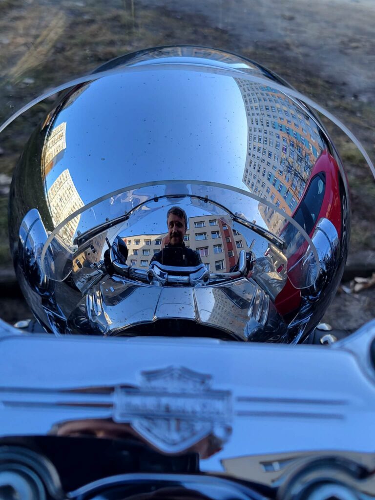 Ostatni dzień lutego – 28 II – był wyjątkowo ciepły jak na kolejny zimowy lutowy dzień. Skoro termometr w słońcu pokazywał 26 stopni, a w samochodzie 14 stopni, to… nie mogłem dużej czekać i postanowiłem włożyć do mojego motocykla naładowany wcześniej akumulator i po raz pierwszy po zimie – czyli od października 2025 – wyruszyć na przejażdżkę po mieście.