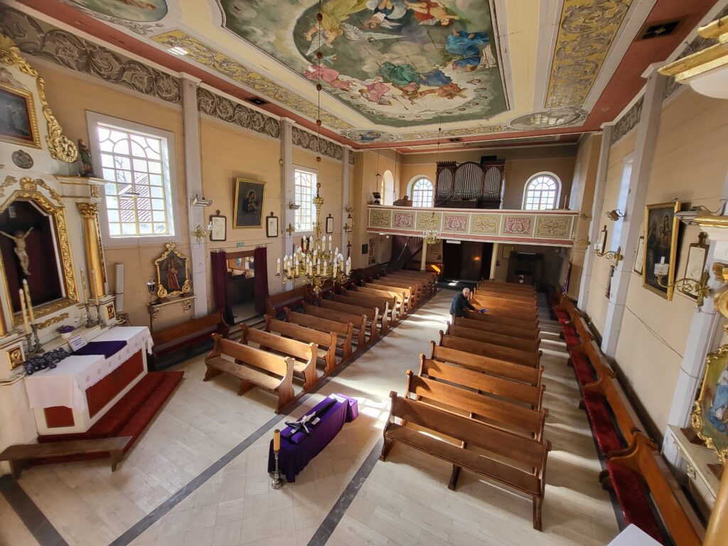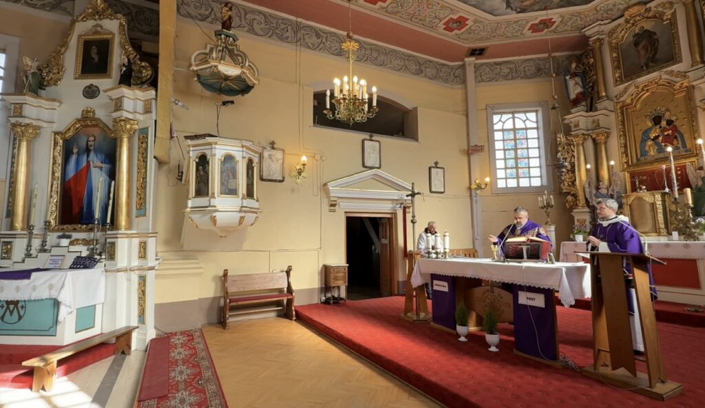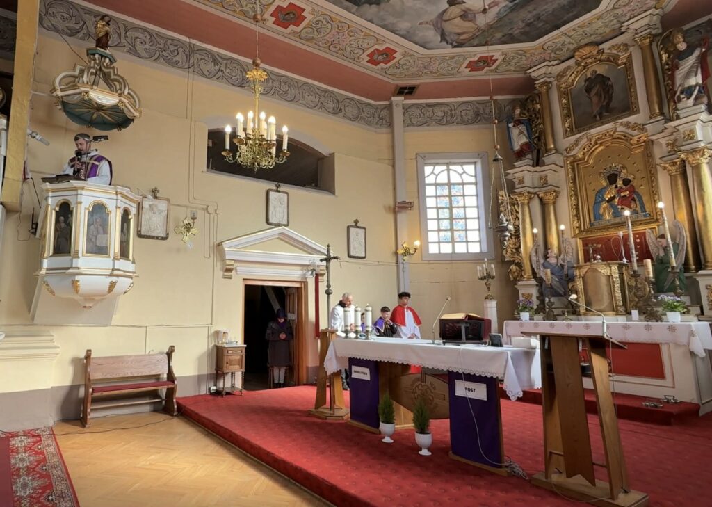 O pierwsze tegoroczne rekolekcje wielkopostne zostałem poproszony w niewielkiej – bo liczącej zaledwie 1300 wiernych parafii na obrzeżach diecezji. Parafia została erygowana w XV wieku, a zabytkowy drewniany kościółek w którym po dziś dzień celebrowana jest liturgia pochodzi z XVIII wieku. Piękne zabytkowe wnętrze z zabytkowymi ołtarzami, malowidłami ściennymi i amboną.