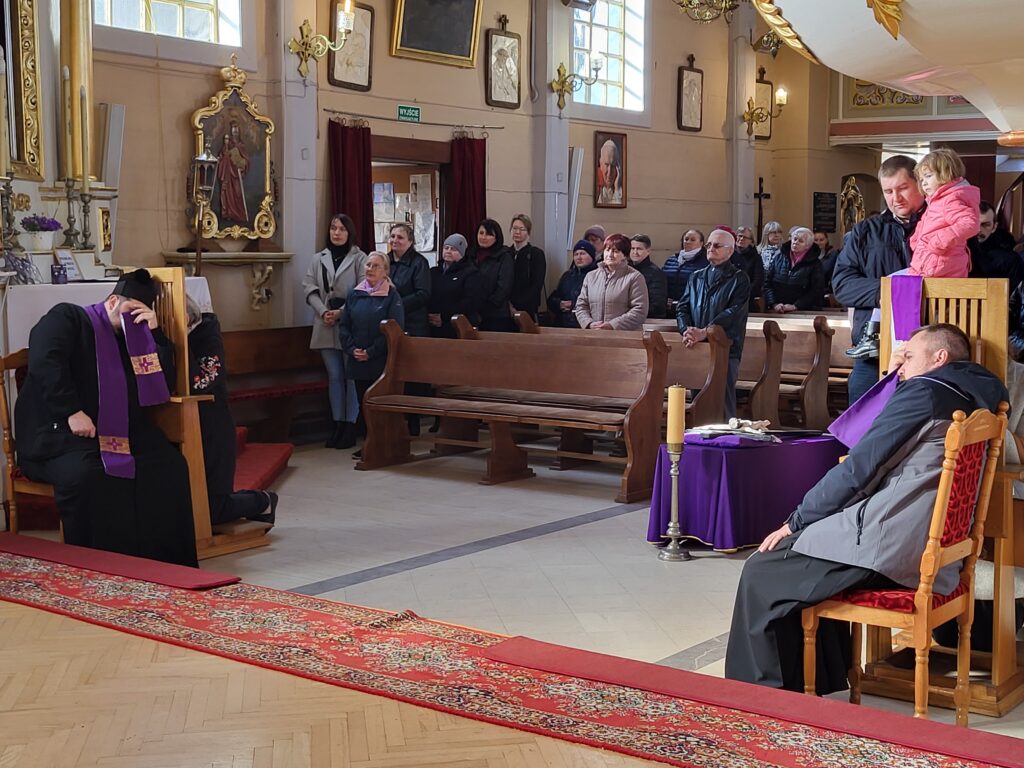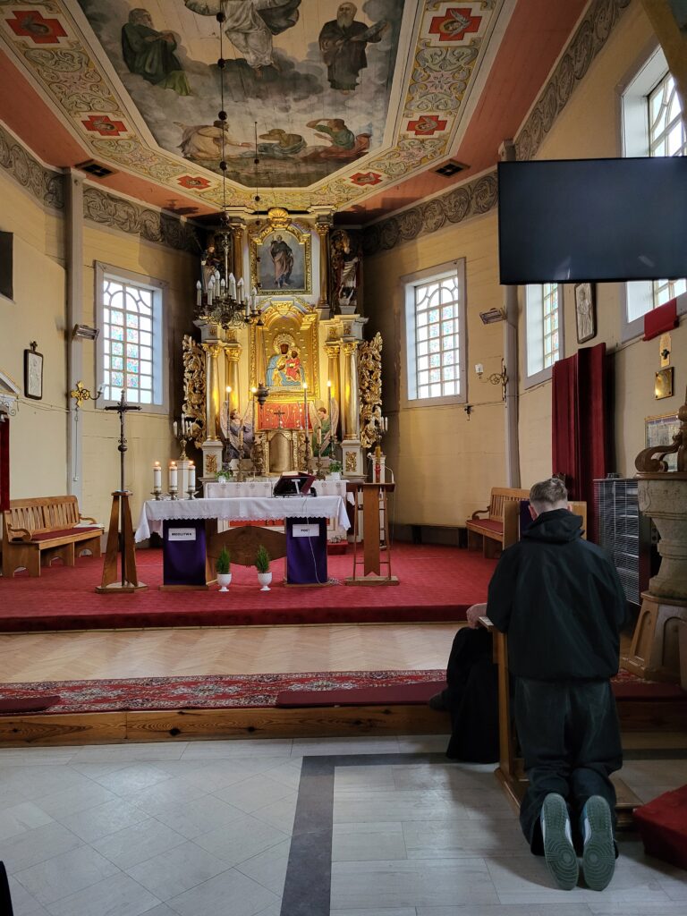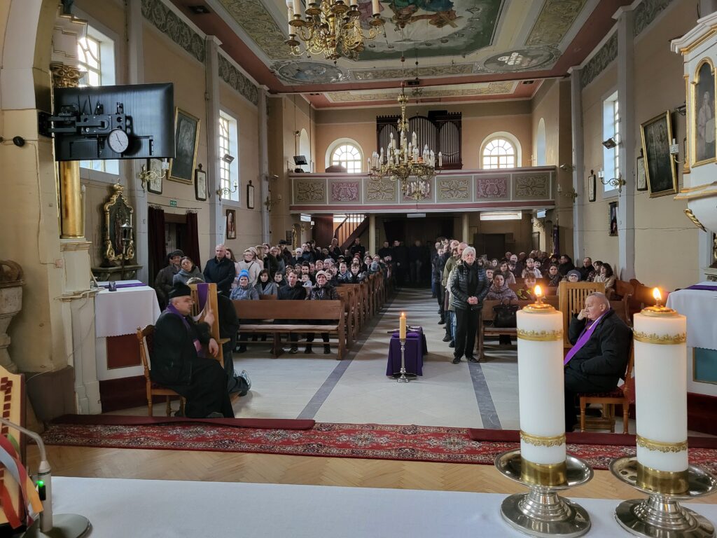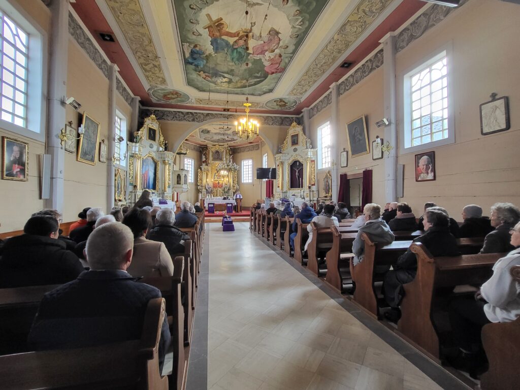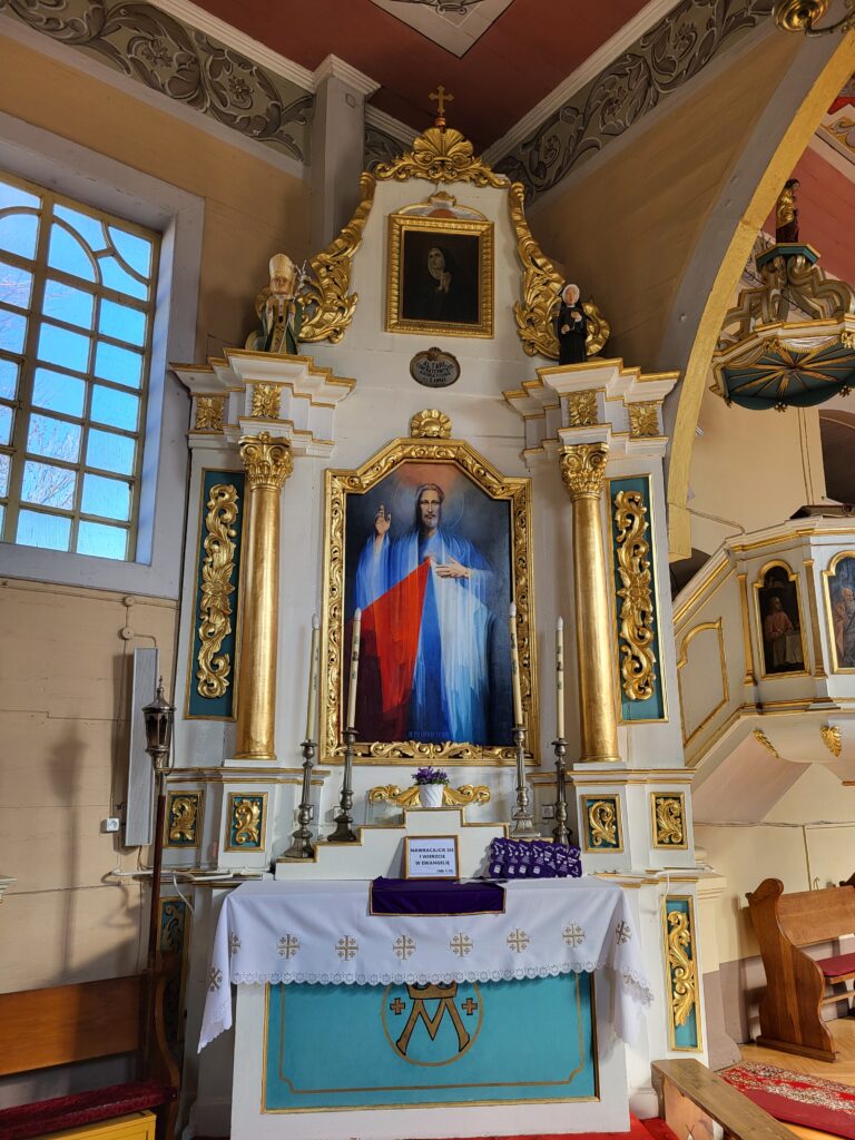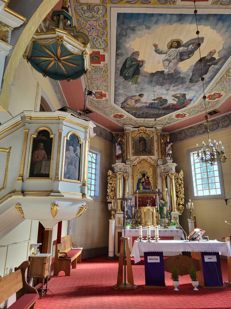 O pierwsze tegoroczne rekolekcje wielkopostne zostałem poproszony w niewielkiej – bo liczącej zaledwie 1300 wiernych parafii na obrzeżach diecezji. Parafia została erygowana w XV wieku, a zabytkowy drewniany kościółek w którym po dziś dzień celebrowana jest liturgia pochodzi z XVIII wieku. Piękne zabytkowe wnętrze z zabytkowymi ołtarzami, malowidłami ściennymi i amboną.