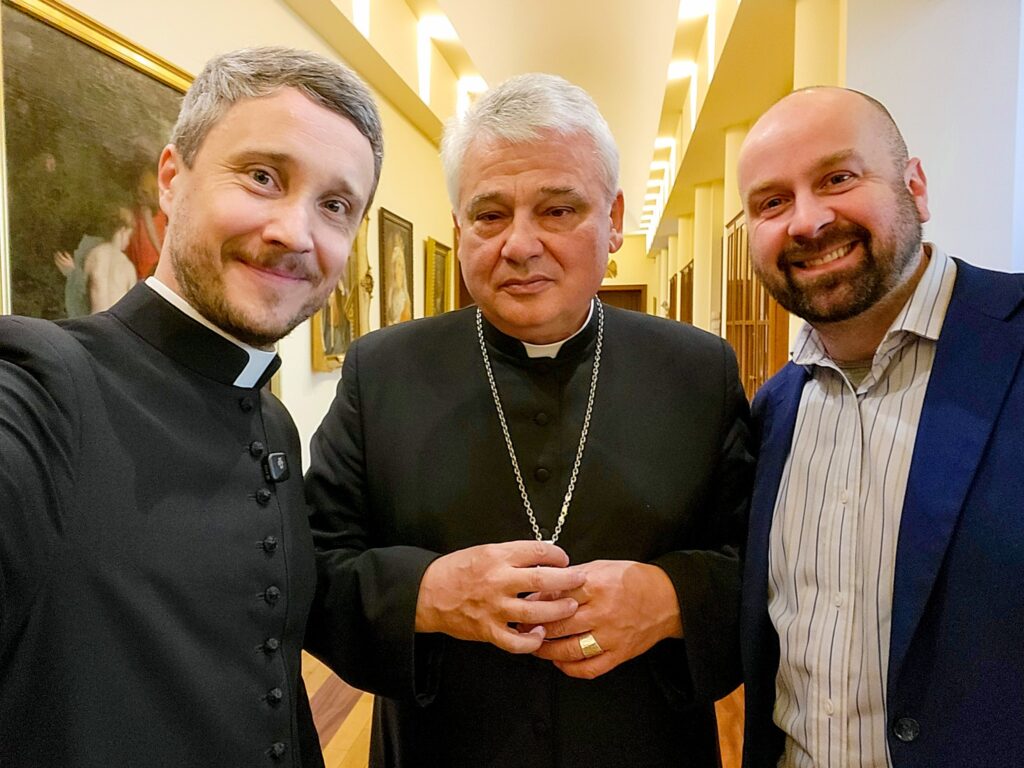 W tym roku – po raz pierwszy – nagraliśmy te życzenia z nowym biskupem diecezjalnym. Kardynał z radością odpowiedział na propozycję nagrania, po którym udało się nam – wraz z operatorem zrobić wspólną pamiątkową fotografię, która dokumentuje początek naszej pracy dla trzeciego Pasterza naszej diecezji.