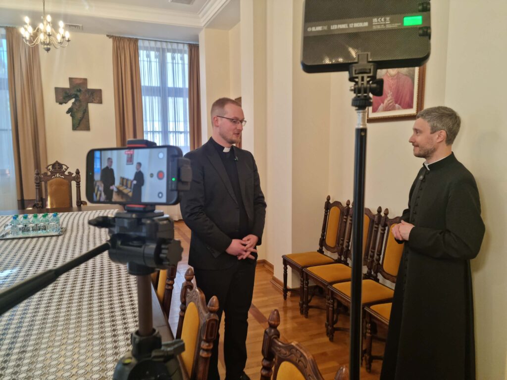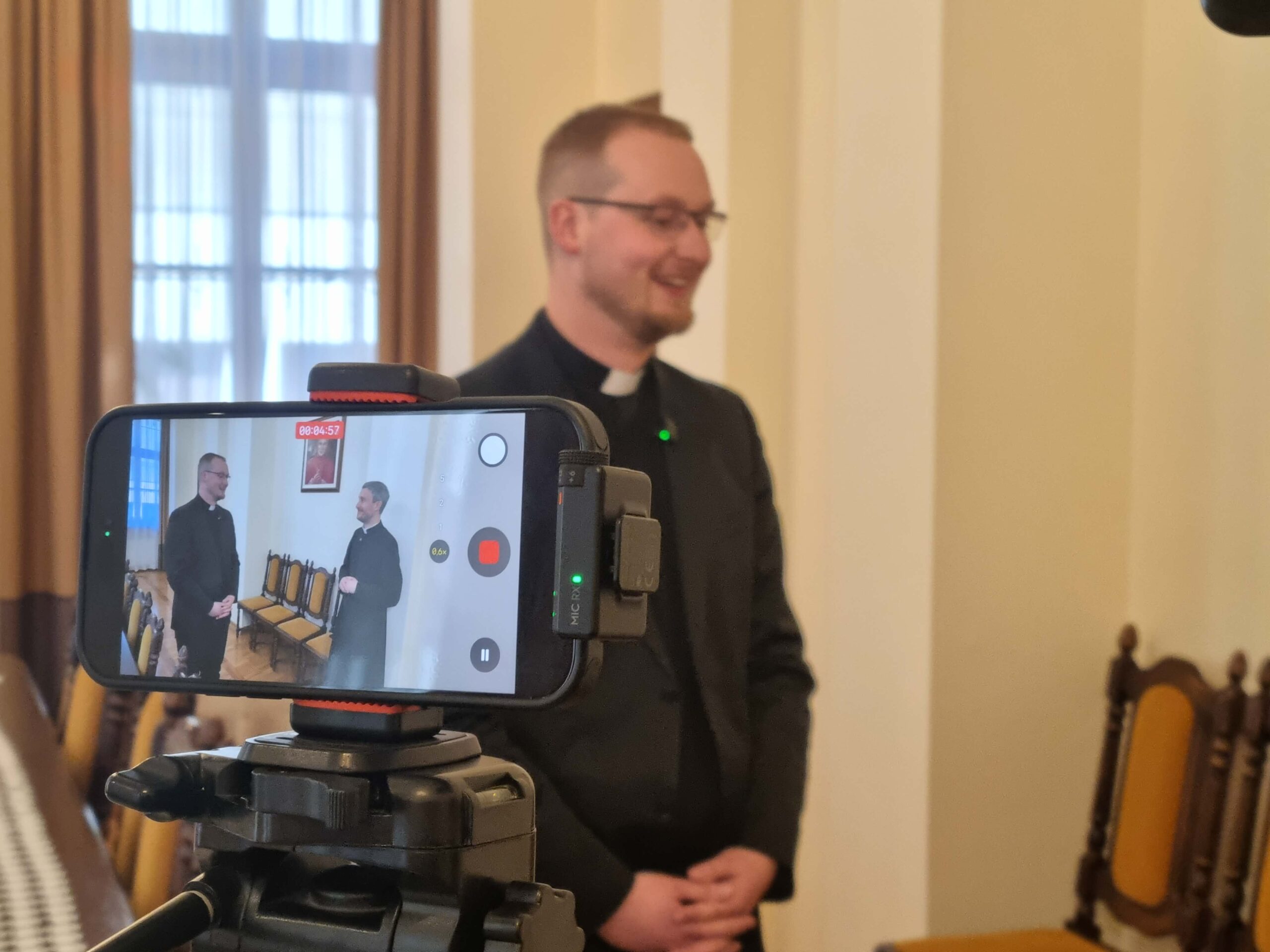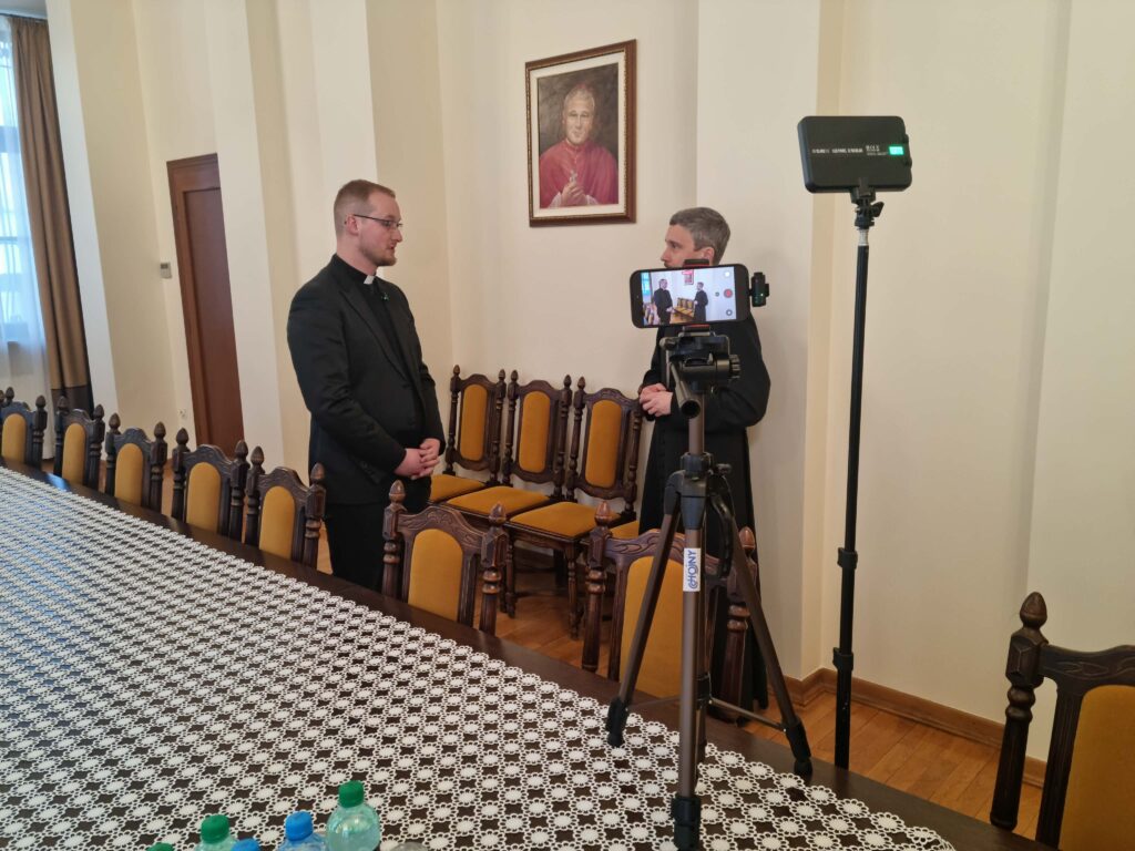 Ksiądz kardynał sam zaproponował, by przeprowadzić wywiad ze swoim sekretarzem, pomysł zaakceptował ksiądz sekretarz i tak powstała blisko 17 minutowa rozmowa o powołaniu kapłańskim i misyjnym, codzienności mieszkańca mojego miasta, pasjach, sporcie i zainteresowaniach sekretarza, który po 5 latach kapłaństwa rozpoczyna nowy etap swojej służby Kościołowi.